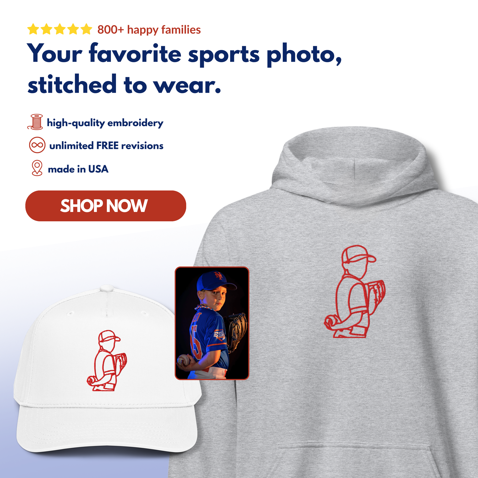 We’re a US-based company turning your proud sports memories into custom embroidered line art. Each piece is handmade with care, celebrating the moments that matter most. At Sports on Lyne, we don’t just create designs—we help you wear your story with pride.