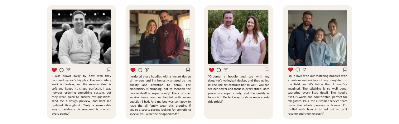 We’re a US-based company turning your proud sports memories into custom embroidered line art. Each piece is handmade with care, celebrating the moments that matter most. At Sports on Lyne, we don’t just create designs—we help you wear your story with pride.